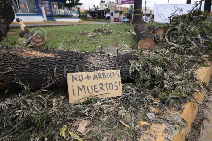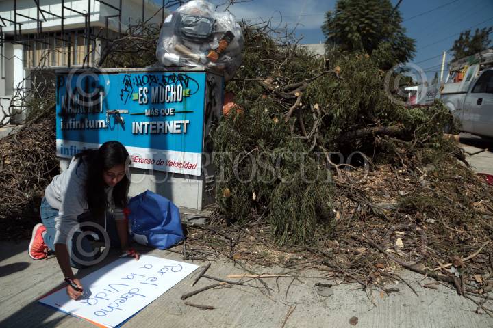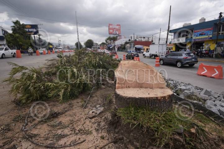 Fueron derribados decenas de árboles como parte de la construcción del puente a desnivel en la avenida Lázaro Cárdenas. Activistas y vecinos se unieron en protesta por dicha tala a la que tachan de ecocidio.