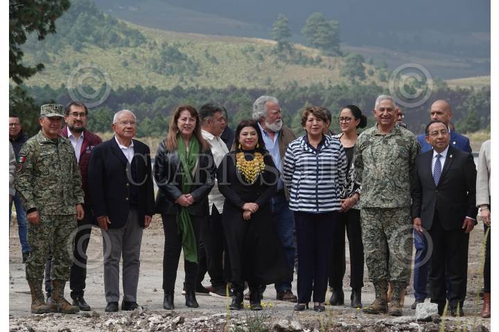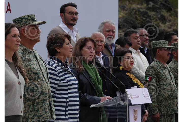 CIUDAD DE MÉXICO, 06NOVIEMBRE2024.- Las gobernadoras Delfina Gómez (Estado de México), Clara Brugada (Ciudad de México) y Margarita González Saravia (Morelos) encabezaron el anuncio de medidas y un plan conjunto para combatir la tala ilegal en el llamado Bosque de Agua, límite de la alcaldía Tlalpan, Estado de México y Morelos. FOTO: GALO CAÑAS/CUARTOSCURO.COM
