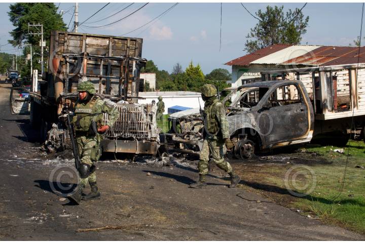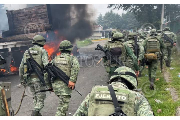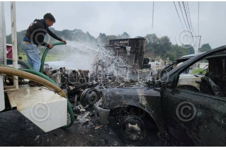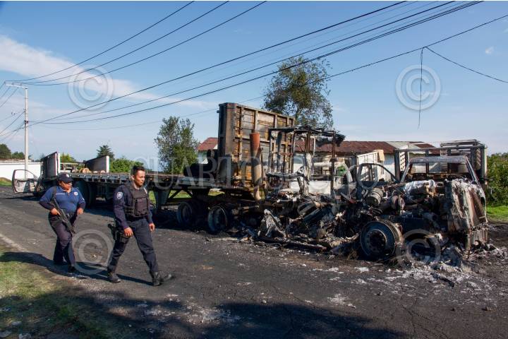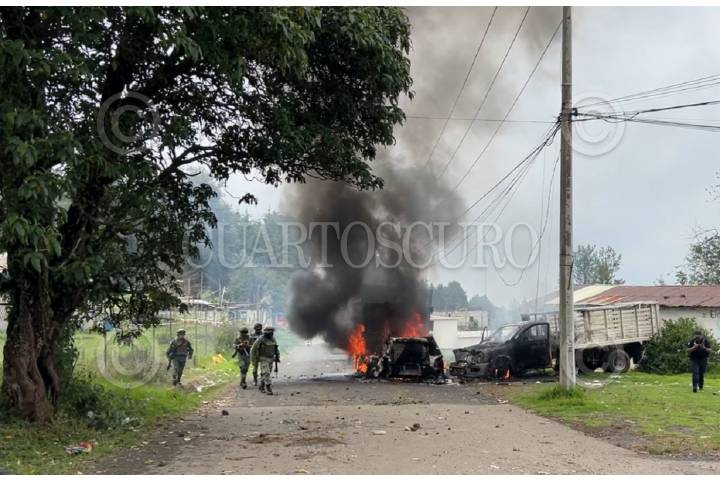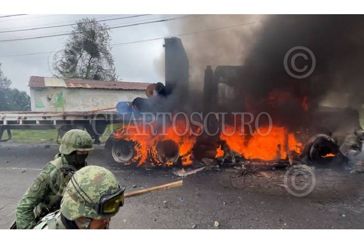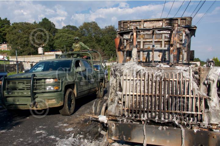 Un operativo contra talamontes llevado a cabo por investigadores de la Fiscalía de Morelos, apoyados por soldados del Ejército y elementos de la Guardia Nacional devino en un enfrentamiento contra un grupo de 120 personas, que quemaron 3 vehículos de carga y un tractocamión en la colonia Alcanfores de esta municipalidad, no se reportan detenidos.