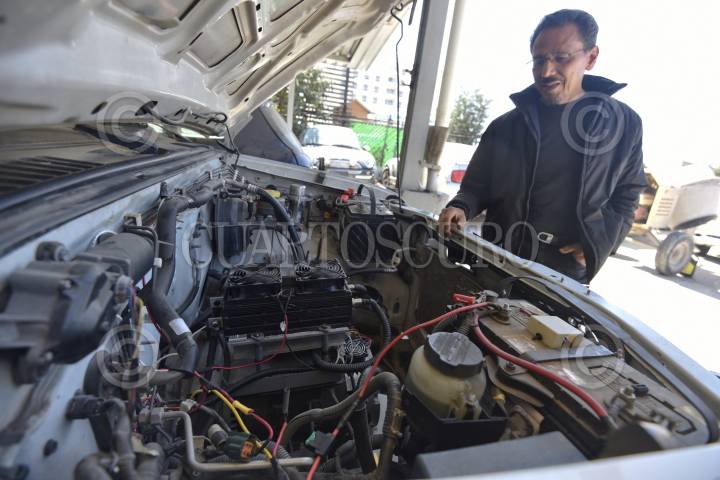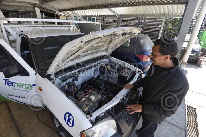 METEPEC, ESTADO DE MÉXICO, 22MARZO2019. Ante el incremento del precio del combustible que se ha dado en los últimos meses el taller Alto Rendimiento Automotriz dirigido por Álvaro de la Paz Zavala un taller mecánico en donde se dedican a convertir autos convencionales a eléctricos, su preocupación por el medio ambiente lo llevó a buscar una forma de contaminar menos y economizar, la transformación cuesta alrededor de 140 mil pesos. FOTO: ARTEMIO GUERRA BAZ /CUARTOSCURO.COM