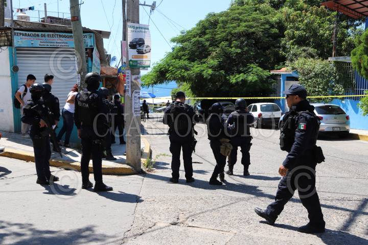 ACAPULCO, GUERRERO, 22OCTUBRE2019.- Hombres armados atacaron un taller mecánico, localizado en la calle Hermanos Bravo, dos trabajadores resultaron lesionados, quienes fueron auxiliados por sus familiares trasladándolos al hospital. Vecinos indicaron que los agresores viajaban en un vehículo marca Volkswagen tipo taxi azul y blanco. Elementos de la Policía del Estado y Federal resguardaron el área, en donde se observaron varios casquillos percutidos. FOTO: BERNANDINO HERNÁNDEZ /CUARTOSCURO.COM