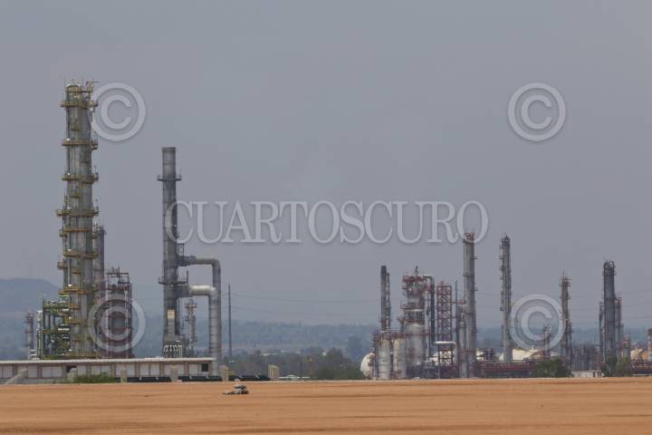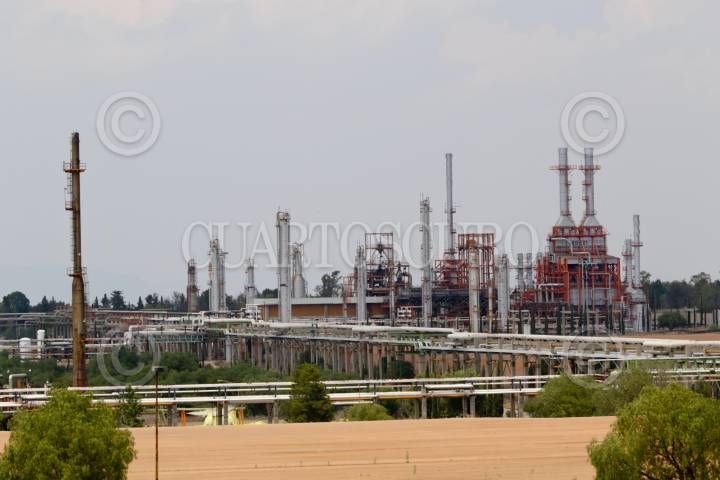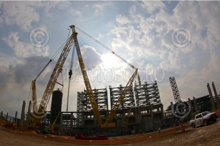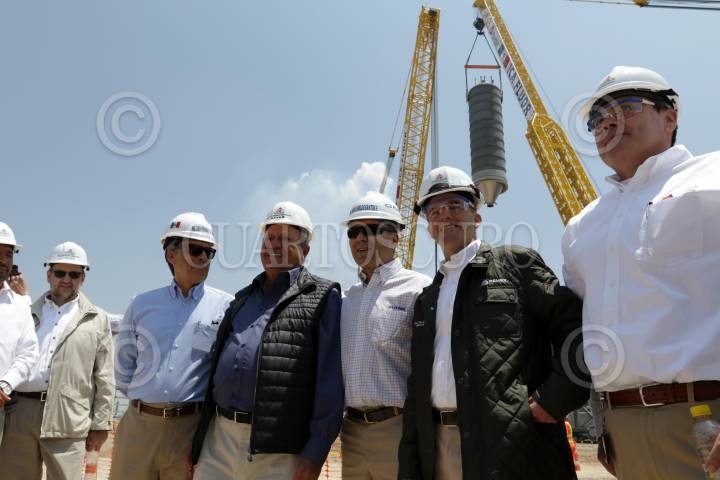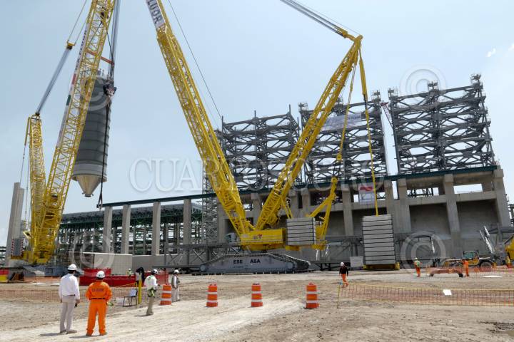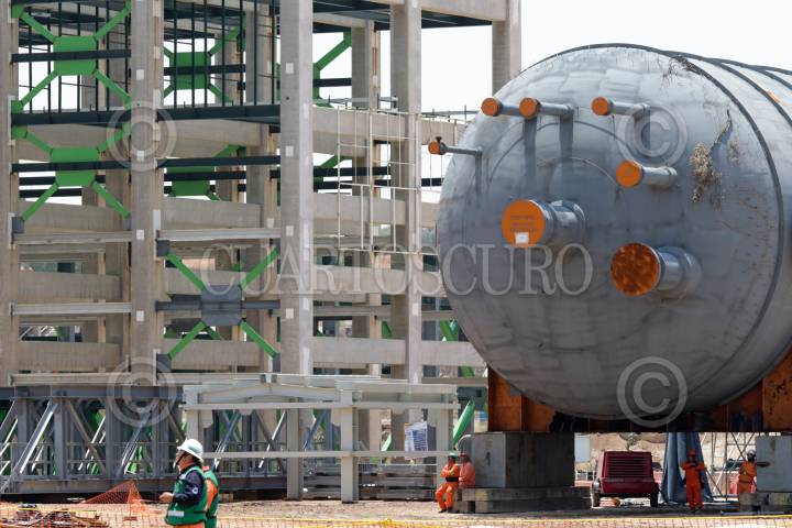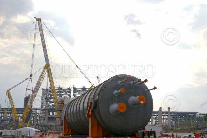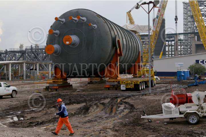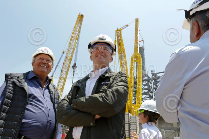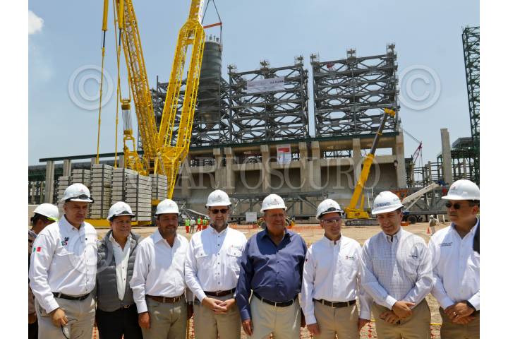 TULA, HIDALGO, 18ABRIL2017.- En la refinería de Miguel Hidalgo inició el montaje del primer tambor de coquización, que forma parte de la reconfiguración de este complejo, los trabajos para colocar estos tambores o calderas tardarán al menos año y medio en ensamblarse y entrar en funcionamiento. El evento fue encabezado por Carlos Murrieta Cummings, director general de Pemex Transformación Industrial; José Antonio González Anaya, director de Pemex, y Carlos Romero Deschamps, líder del sindicato de los petroleros. FOTO: CUARTOSCURO.COM