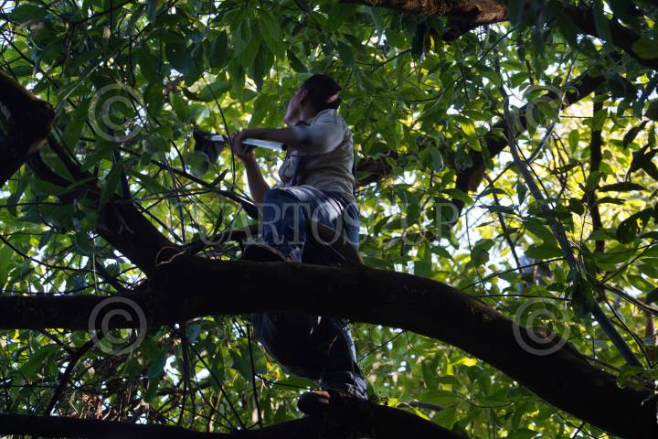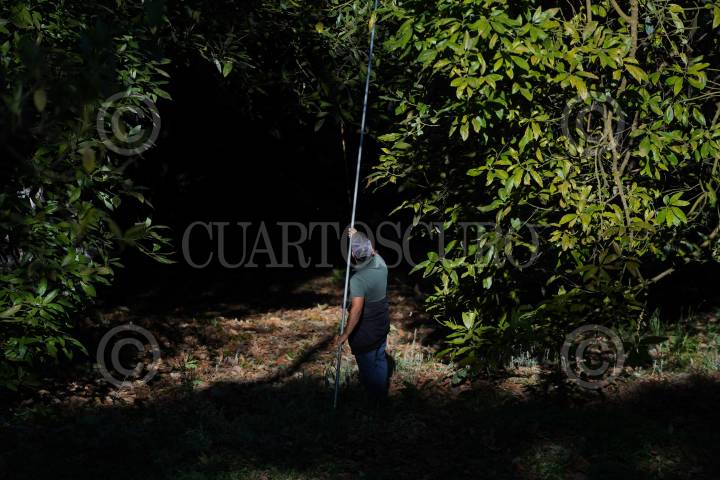 Trabajadores luzcan el aguacate con ganchos durante la cosecha de este año