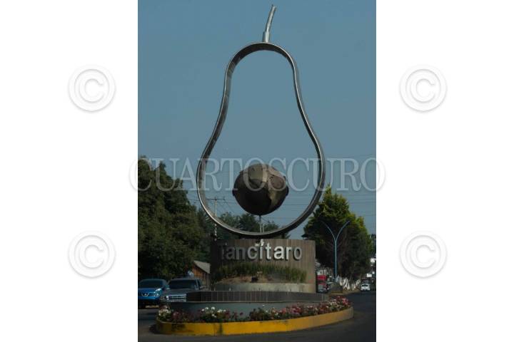 Escultura de aguacate a la entrada de Tancítaro, Michoacán