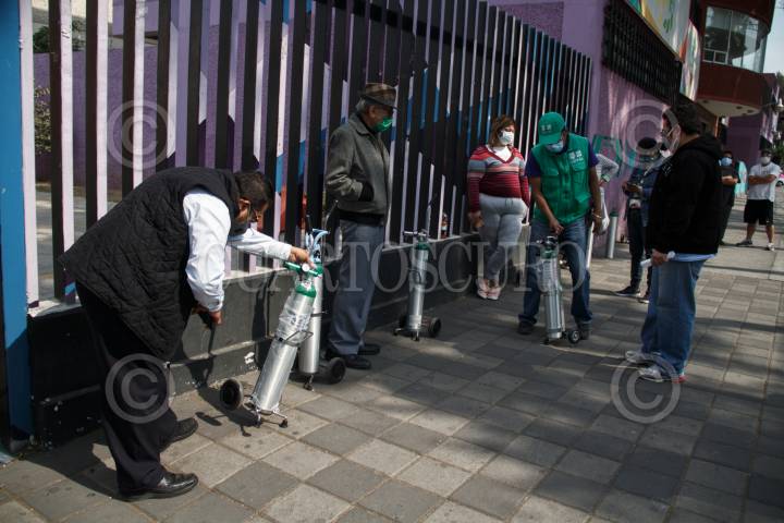 Decenas de familiares acuden desde temprana hora a la delegación GAM para llenar de manera gratuita sus tanques de oxígeno