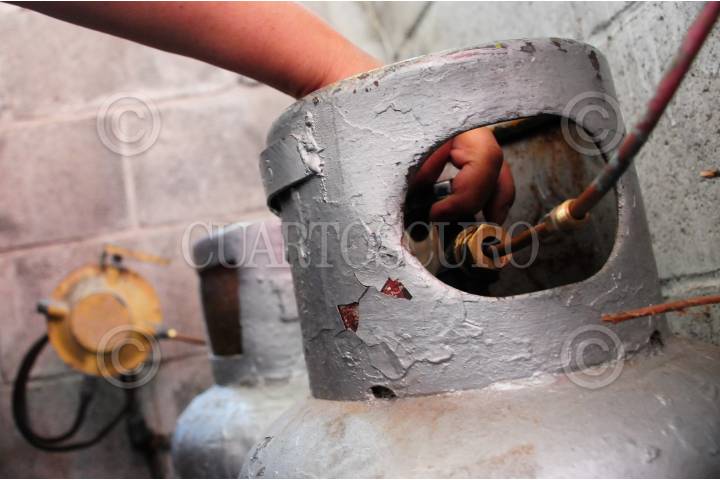 Cilindros de gas que funcionan en un domicilio de una vecindad.