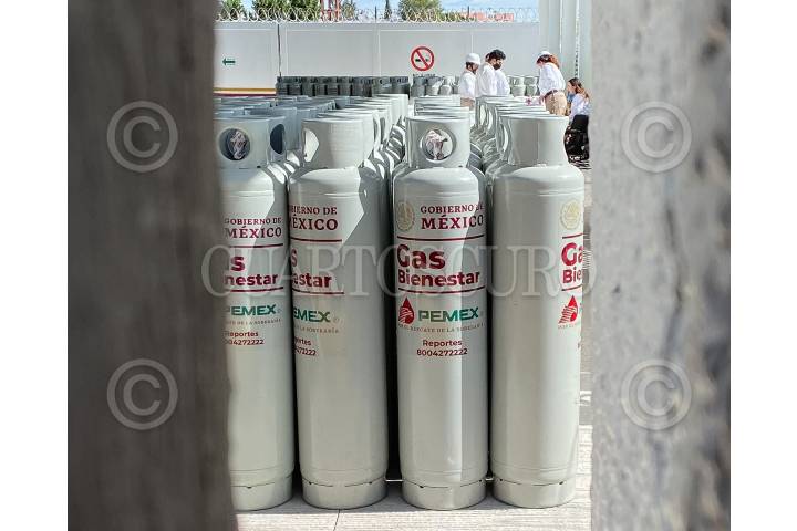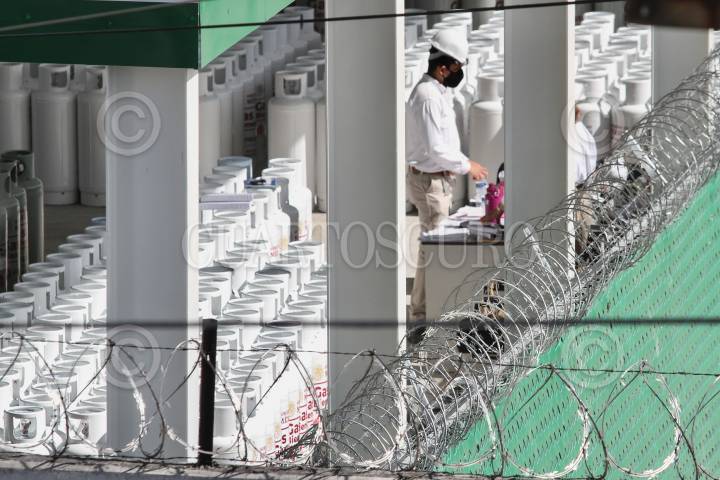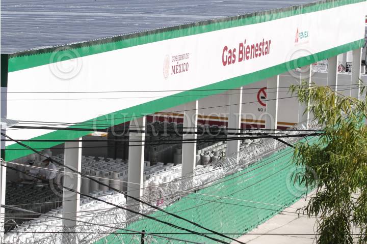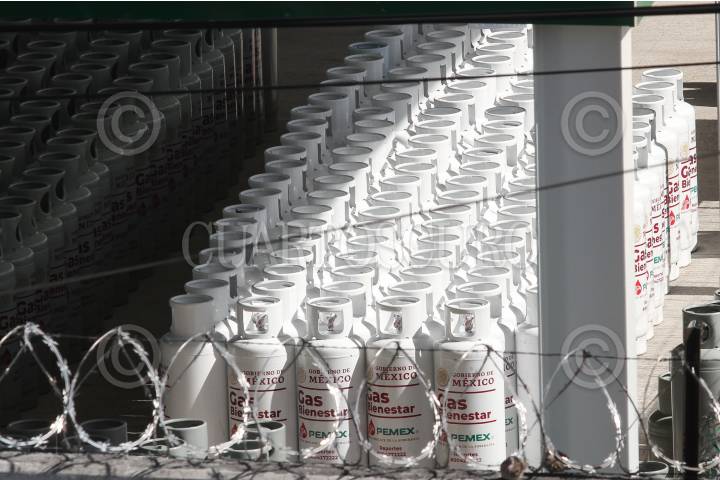 Cilindros de Gas Bienestar al interior de la planta de distribución.