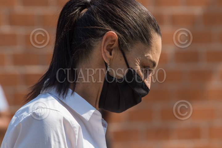 La Jefa de Gobierno, Claudia Sheinbaum, lució un crubebocas negro durante la inauguración de la Alberca Semiolímpica Renovación Nacional.