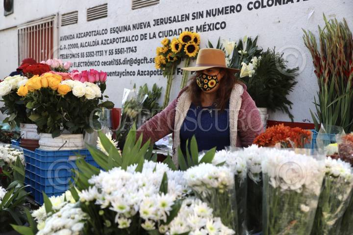 Una mujer vende flores a las afueras de un mercado en la alcaldía de Azcapotzalco.