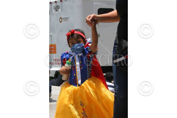 MÉXICO, D.F., 30ABRIL2009.- hoy se festeja el dia del niño, pero por la alerta sanitaria todas las actividades an sido canceladas en las calles se observan niños con disfraces y tapabocas. FOTO: RICARDO CASTELAN/CUARTOSCURO.COM
