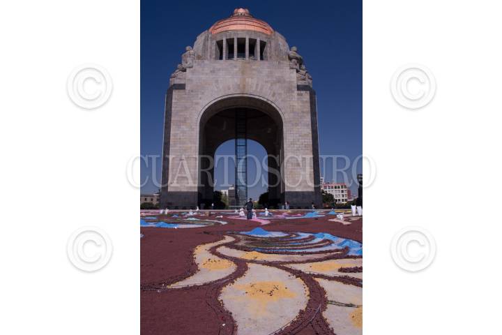 CIUDAD DE MÉXICO, 04ABRIL2017.- Por la mañana comenzó el retiro de la mega alfombra frente a la Plaza de la República realizado dentro de las actividades del Festival de las Flores y Jardines. FOTO: SELENE PACHECO /CUARTOSCURO.COM