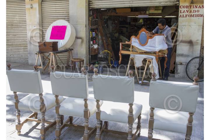 MÉXICO, D.F., 29ENERO2015.- La tapicería Horacio Burgos, ubicada en la calle de Atlixco, en la colonia Condesa, es una de las más antiguas de la zona, en donde se realizan trabajos de reparación y remodelación de muebles antiguos. FOTO: ISAAC ESQUIVEL /CUARTOSCURO.COM