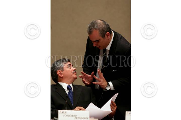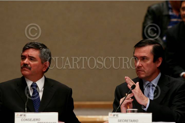 MÉXICO, D.F., 19JUNIO2009.- Leonardo Valdés Zurita, consejero presidente del IFE y el consejero Alfredo Figueroa durante los trabajos de la sesión extraordinaria del Consejo General celebrada hoy por la tarde. FOTO: RICARDO CASTELAN/CUARTOSCURO.COM