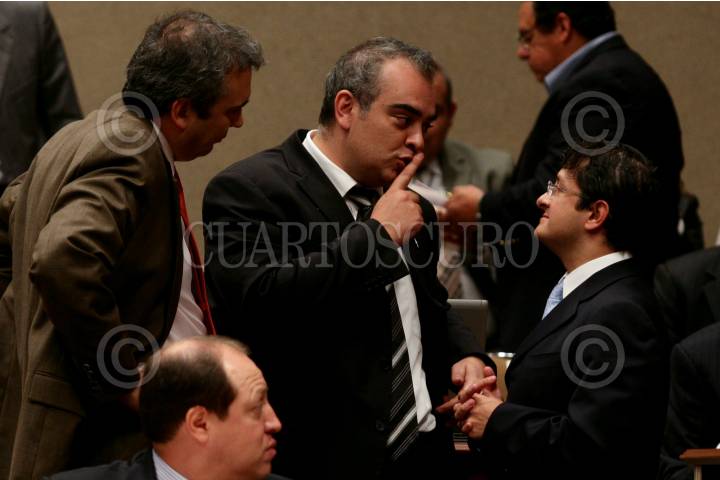 MÉXICO, D.F., 19JUNIO2009.- Los consejeros Benito Nacif, Alfredo Figueroa y Virgilio Andrade Martinez, durante los trabajos de la sesión extraordinaria del Consejo General celebrada hoy por la tarde. FOTO: RICARDO CASTELAN/CUARTOSCURO.COM