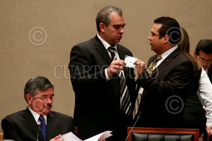MÉXICO, D.F., 19JUNIO2009.- Leonardo Valdés Zurita, consejero presidente del IFE y el consejero Alfredo Figueroa y el contrador Alfredo Cristalinas, durante los trabajos de la sesión extraordinaria del Consejo General celebrada hoy por la tarde. FOTO: RICARDO CASTELAN/CUARTOSCURO.COM