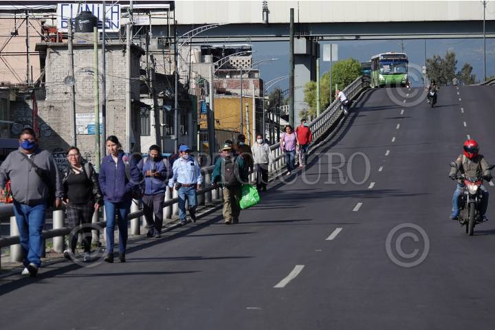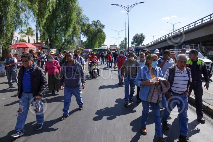 Transportistas que mantenían un bloqueo en Avenida Tláhuac y Periférico marchan rumbo al Zócalo para obtener una resolución en la exigencia del aumento de tarifas