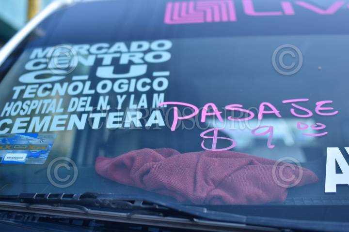 En la capital entró en vigor la nueva tarifa de transporte que representa un aumento de $1 peso, por lo que unidades de transporte público concesionado comenzaron a mostrar calcomanías con el nuevo precio.