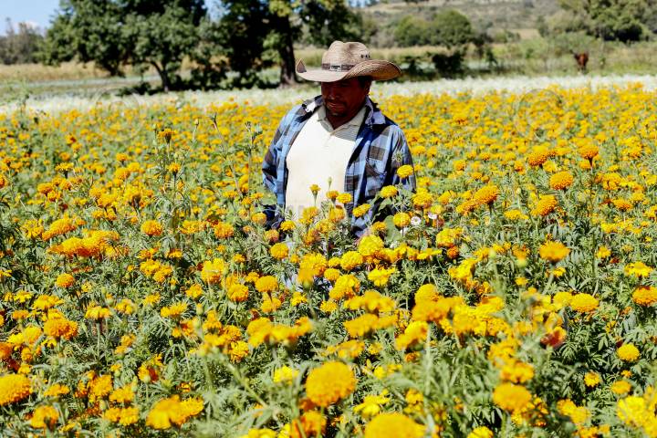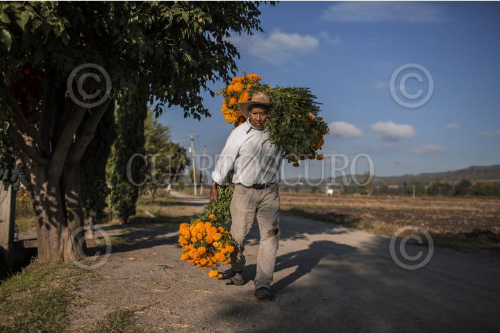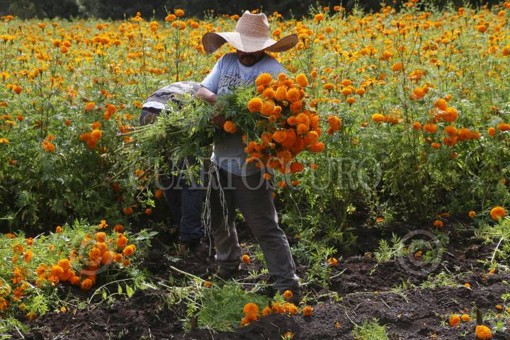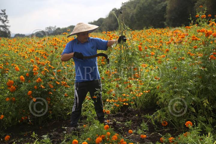 TARIMBARO, MICHOACÁN, 23OCTUBRE2017.- El Servicio de Información Agroalimentaria y Pesquera (SIAP), reportó este año más de 25 hectáreas de cempasúchil, 21 de mano de león y 25 de nubes, está ultima utilizada como ornamento. Desde el mes de agosto se siembran las flores para que a finales del mes de octubre florezcan y sean utilizadas para las fiestas y ceremonias del Día de muertos. FOTO: JUAN JOSÉ ESTRADA SERAFÍN / CUARTOSCURO.COM
