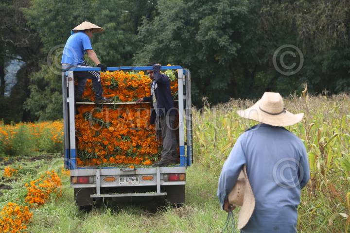 TARÍMBARO, MICHOACÁN, 17OCTUBRE2018.- Es el municipio que reporta mayor valor de producción de nube, mano de león y cempasúchil, de acuerdo con el Servicio de Información Agroalimentaria y Pesquera (SIAP). Los campesinos de Tarímbaro solo destinan una parte de sus parcelas a la siembra de flores dado que es limitada la temporada en que se pueden comercializar y a un costado siembran hortalizas y maíz. Michoacán es el estado con el segundo lugar en valor de producción de cempasúchil en el país de acuerdo con el SIAP con 6 millones 385 mil 240 pesos y Tarímbaro el municipio mejor colocado en este ranking con 3 millones 750 mil pesos. FOTO: JUAN JOSÉ ESTRADA SERAFÍN /CUARTOSCURO.COM