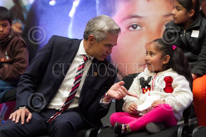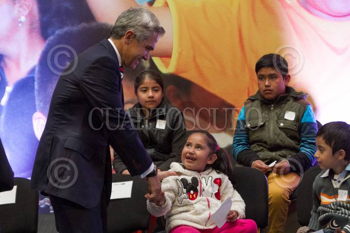 CIUDAD MÉXICO, 28MARZO2016.- Miguel Ángel Mancera, Jefe de Gobierno de la Ciudad de México, y Gamaliel Martínez Pacheco, director del DIF CDMX, entregaron a niños que han perdido a sus padres la tarjeta de "Educación Garantizada", con la que se les apoya a sus familias para continuar con sus estudios, en el Antiguo Palacio del Ayuntamiento. FOTO: MOISÉS PABLO /CUARTOSCURO.COM