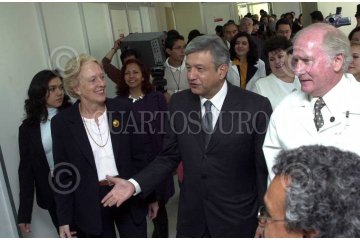 México D.F. 09 FEBRERO 2004.- La secretaria de Salud, Assa Cristina Laurell, Andrés Manuel López Obrador, jefe de Gobierno y el director del Hospital Ruben Leñero, Rulph Meissner Huebner, durante el recorrido por el hospital en el que se mostró la cuarta etapa de remodelación. FOTO: Sandra Perdomo/CUARTOSCURO.COM