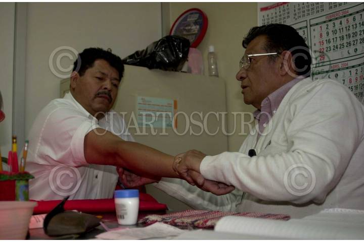 México D.F. 09 FEBRERO 2004.- Uno de los médicos que labora en el Hospital Ruben Leñero atiende a un paciente mientras que el jefe de Gobierno, Andrés Manuel López Obrador recorre las instalaciones. FOTO: Sandra Perdomo/CUARTOSCURO.COM