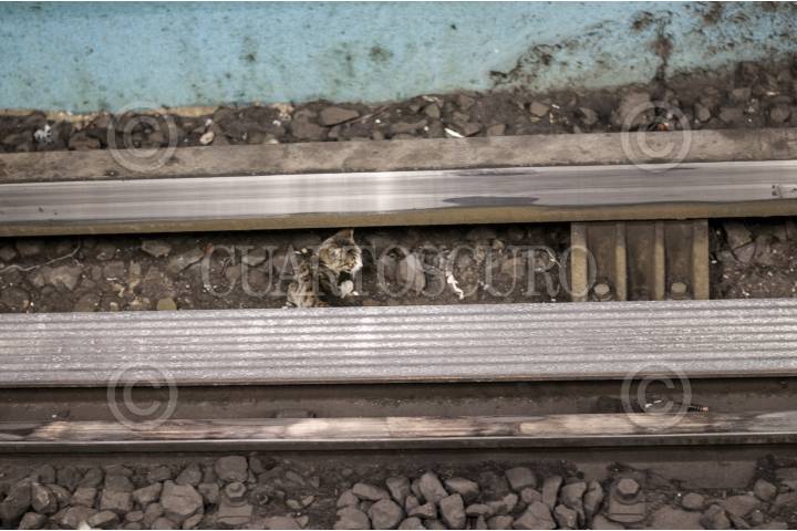 MÉXICO, D.F. 25OCTUBRE2012.- Un pequeño gato deambula por las vías de la estación del metro Chabacano, línea azul, que corre de Tasqueña a cuatro Caminos. FOTO: DIEGO SIMÓN SÁNCHEZ /CUARTOSCURO.COM