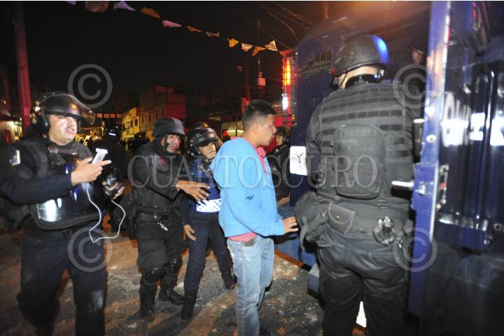 CIUDAD DE MÉXICO, 24ENERO2017.- Policías de la Secretaría de Seguridad Publica de la CDMX en coordinación con el Instituto de Verificación Administrativa (INVEA), llevaron a cabo un operativo en la avenida Tasqueña de verificación a mototaxis, entre Escuela Naval y paseo de los Jardines, colonia Paseos de Tasqueña, cuando fueron agredidos por un grupo de moto-taxistas lo que provocó una gresca con saldo de varios policías heridos y varios detenidos. FOTO: ARMANDO MONROY /CUARTOSCURO.COM