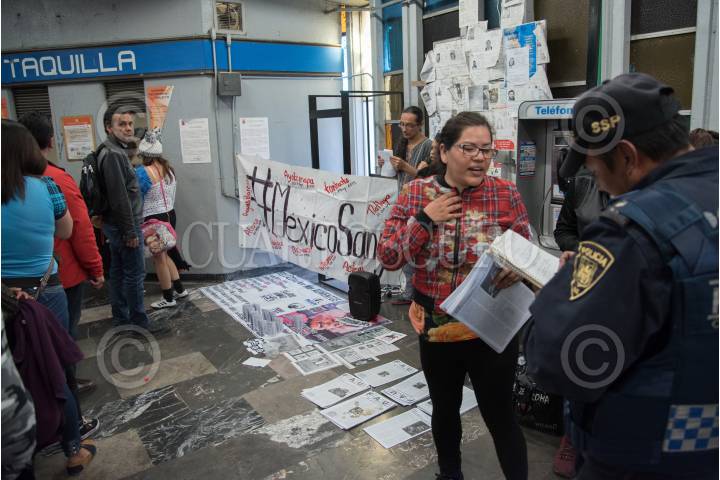 CIUDAD DE MÉXICO, 02DICIEMBRE2017.- Integrantes de organizaciones sociales se manifestaron en el acceso de la estación del metro Tasqueña, para exigir al gobierno el esclarecimiento de los actos violentos que han sucedido en el país. FOTO: MARIO JASSO /CUARTOSCURO.COM
