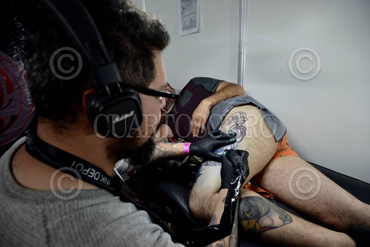 Retrato a un artista del tatuaje durante la expo Tattooarte en la Sala de Armas de Ciudad Deportiva.