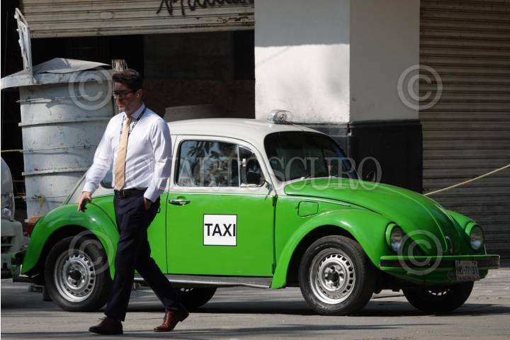 CIUDAD DE MÉXICO, 09DICIEMBRE2024.- Un hombre camina frente a un Taxi Vocho en la Alameda Central. FOTO: GRACIELA LÓPEZ/CUARTOSCURO.COM