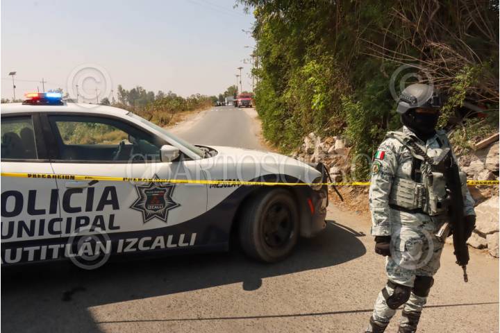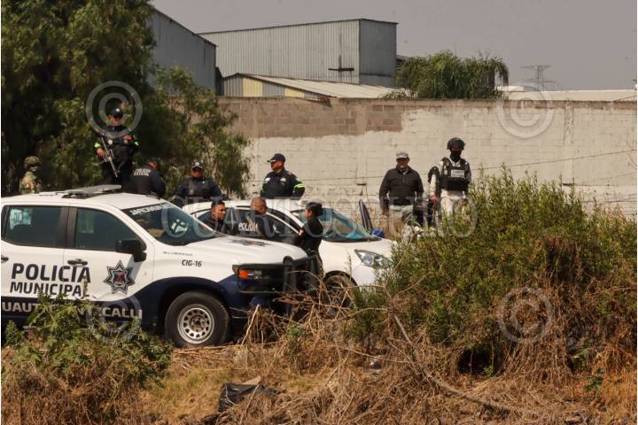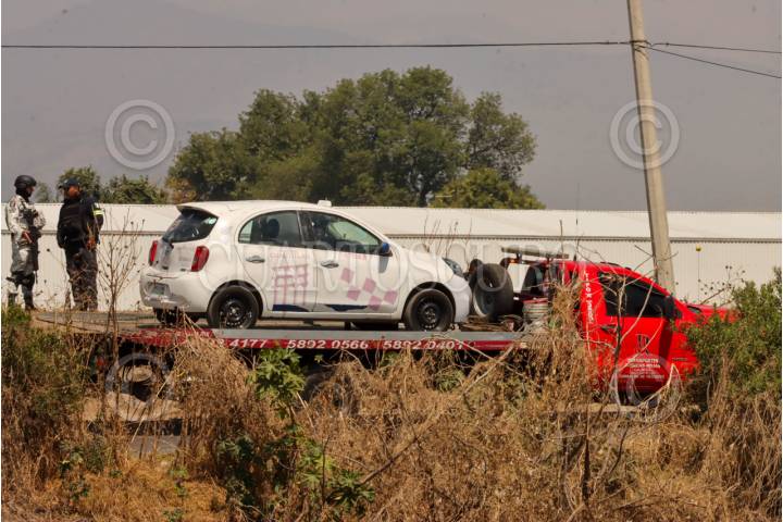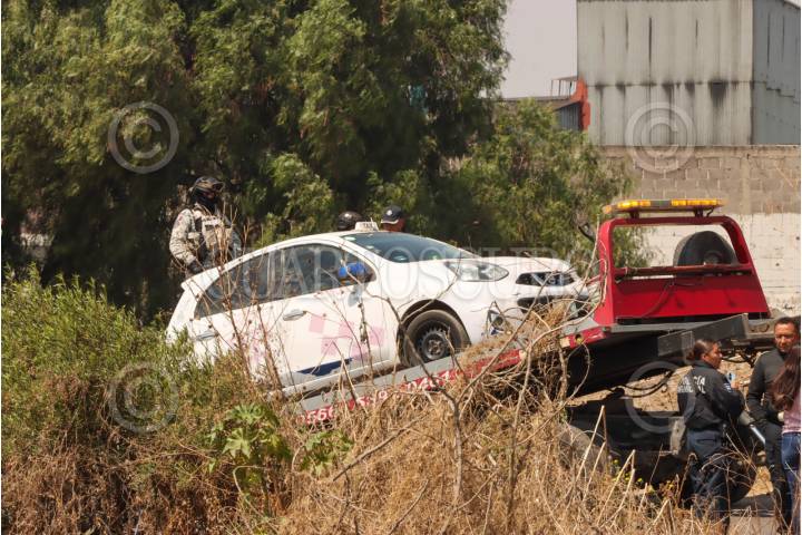 CUAUTITLÁN IZCALLI, ESTADO DE MÉXICO, 08ABRIL2025.- Vecinos reportaron un taxi abandonando, cuando la autoridad revisó la unidad se percataron de que en su interior había tres de cuerpos, lo que provocó una fuerte movilización de fuerzas del orden de los tres órdenes de gobierno. El auto estaba estacionado sobre la lateral del Río Emisor Poniente, en el poblado de San Lorenzo. FOTO: ROGELIO MORALES/CUARTOSCURO.COM