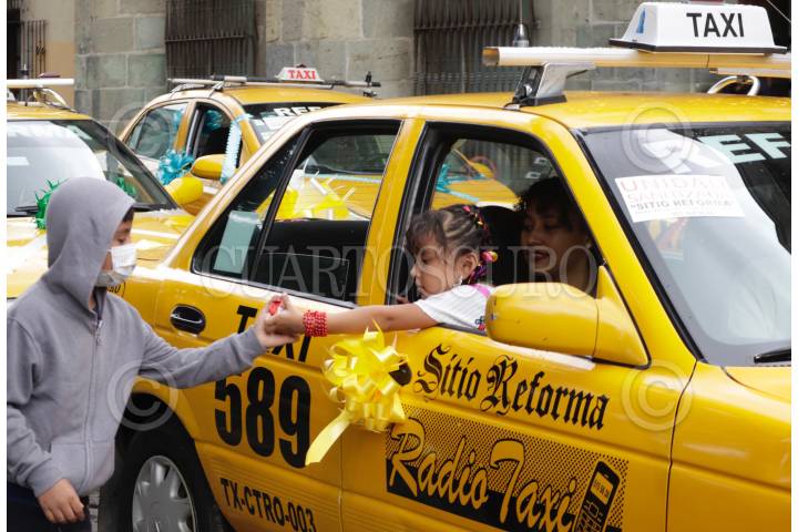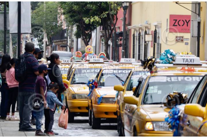 Mil cien taxistas salieron en caravana por el centro de Oaxaca con dirección a la iglesia de la Virgen de Guadalupe para conmemorar su día.