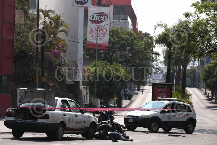 Un hombre que manejaba una motoneta murió cuando se impactó contra el frente de un taxi en la avenida Plan de Ayala en Cuernavaca