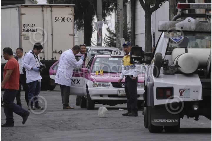 MÉXICO, D.F., 15JULIO2015.- Un taxista fue asesinado a balazos cuando iba a bordo de su unidad, sobre la calle Naranjo, casi esquina con Eulalia Guzmán de la colonia Atlampa. FOTO: ARMANDO MONROY /CUARTOSCURO.COM