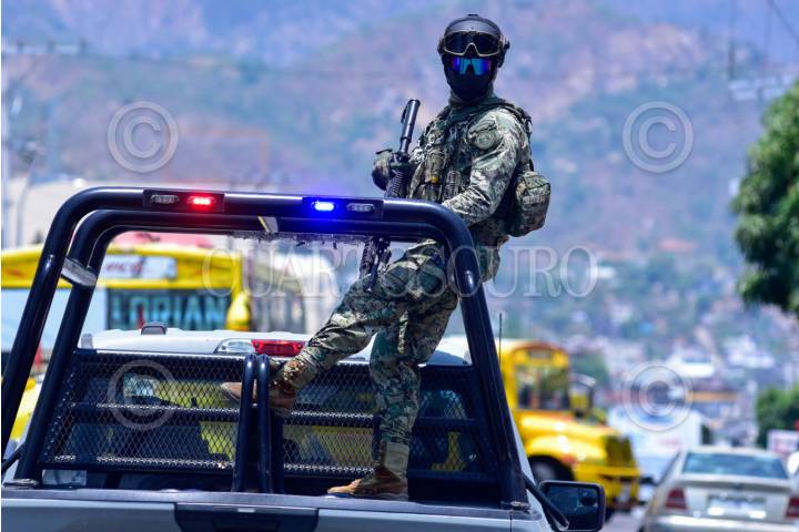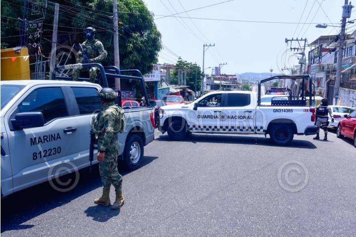 ACAPULCO, GUERRERO, 27MARZO2025.- Un taxista fue asesinado a balazos en la transitada avenida Constituyentes del puerto de Acapulco, testigos informaron que hombres armados persiguieron al chófer hasta darle alcancé y para asesinarlo, el lugar quedó asegurado por agentes de la Guardia Nacional, Marina, y policías ministeriales. FOTO: CARLOS ALBERTO CARBAJAL/CUARTOSCURO.COM