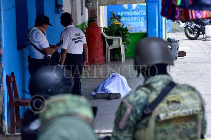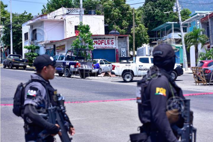 ACAPULCO, GUERRERO, 21JUNIO2024.- Un sitio de taxis fue atacado a balazos por hombres armados en la colonia Centro de Acapulco, y el resultado fue de un chofer asesinado el hecho ocurrió esta tarde entre las calles Aquiles serdán y calzada de Pie de la Cuesta, el día de ayer a pocos metros de este lugar fue asesinado un vendedor ambulante, apesar de la vigilancia de la Guardia Nacional en las calles del puerto. FOTO: CARLOS ALBERTO CARBAJAL/CUARTOSCURO.COM