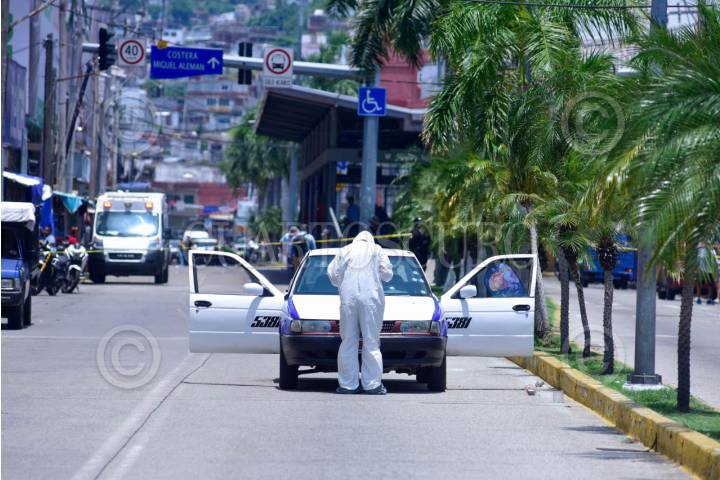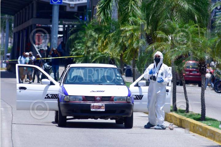 ACAPULCO, GUERRERO, 18JULIO2025.- El chófer de un taxi fue atacado a balazos y falleció mientras recibía atención médica en un hospital, mientras qué una mujer que viajaba como pasajera también resultó herida, el hecho ocurrió en la avenida Cuauhtémoc en la zona Centro de Acapulco poco antes del medio día. FOTO: CARLOS ALBERTO CARBAJAL/CUARTOSCURO.COM