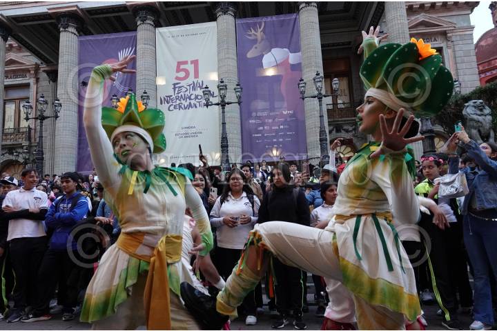 GUANAJUATO, GUANAJUATO, 19OCTUBRE2023.- Comparsa Sonora ofreció teatro al aire libre en las calles del Centro Histórico durante la edición 51 del Festival Internacional Cervantino. FOTO: GRACIELA LÓPEZ /CUARTOSCURO.COM
