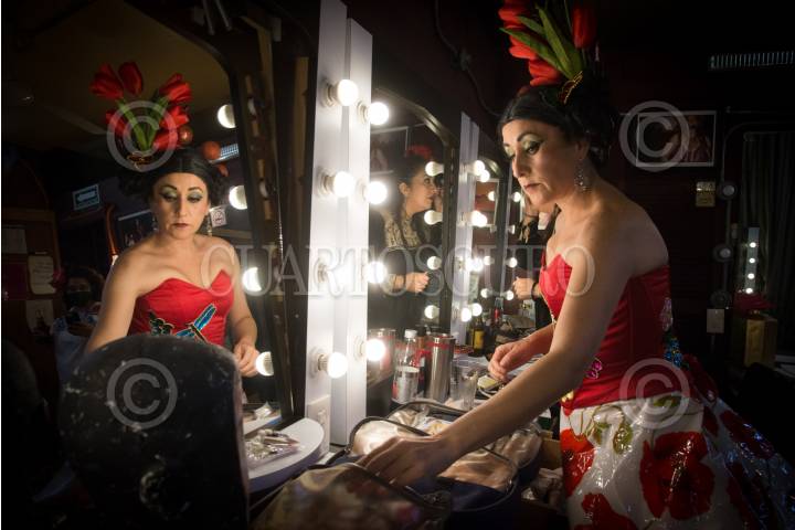 CIUDAD DE MÉXICO, 25ENERO2024.- Aspectos de la conferencia encabezada por Las Reinas Chulas para anunciar las presentaciones que el Teatro-Bar El Vicio, alcaldía Coyoacán, tendrá para esta nueva temporada. FOTO: GALO CAÑAS/CUARTOSCURO.COM