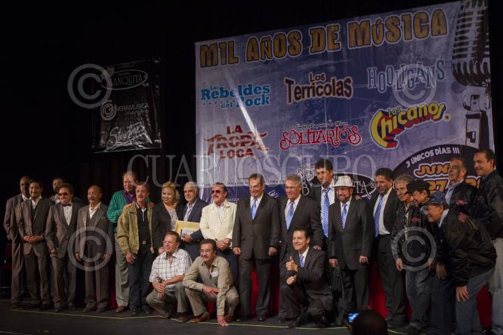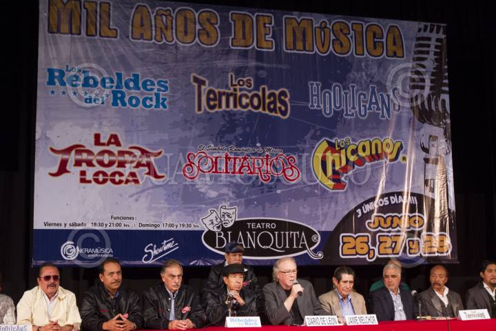 MÉXICO, D.F., 16JUNIO2015.- Por primera vez juntos en un mismo escenario "Mil Años de Música" se presentara los días 26, 27 y 28 de junio en el Teatro Blanquita. Los Rebeldes del Rock, Los Terrícolas, El Símbolo Romántico de México: Solitarios, La Tropa Loca, Hooligans y Los Chicanos, ofrecerán un show musical en el que cada grupo realizará un recorrido por sus grandes éxitos musicales. FOTO: MOISÉS PABLO /CUARTOSCURO.COM