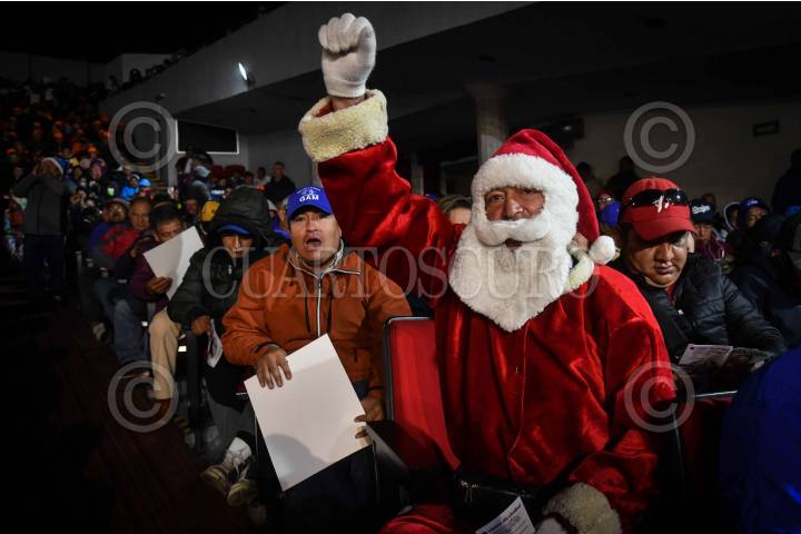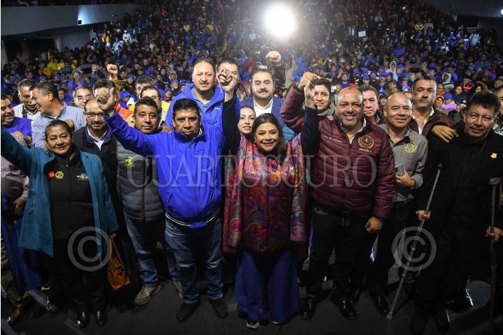 CIUDAD DE MÉXICO, 22DICIEMBRE2023.- Integrantes del Sindicato Único de Trabajadores de la Ciudad de México, durante la asamblea informativa de Clara Brugada, precandidata a la jefatura de gobierno por la alianza "Sigamos Haciendo Historia" por Morena, PT, y PVEM, realizada en el Teatro Blanquita. FOTO: MARIO JASSO/CUARTOSCURO.COM