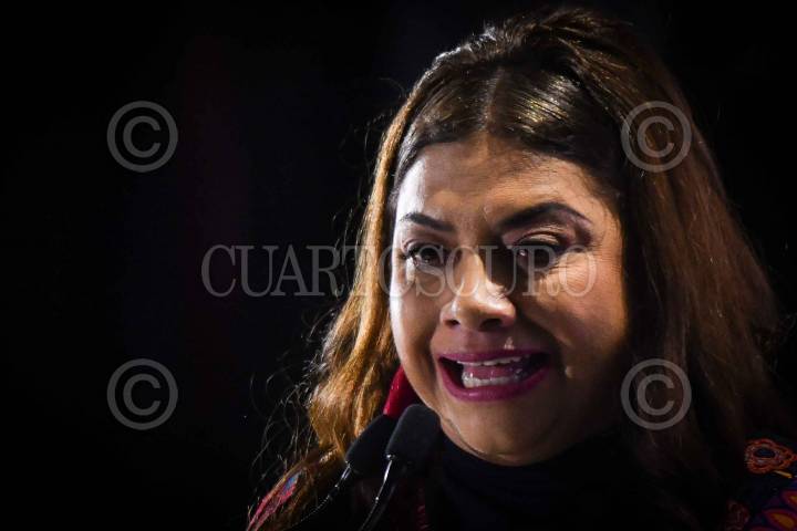 CIUDAD DE MÉXICO, 22DICIEMBRE2023.- Clara Brugada, precandidata a la jefatura de gobierno por la alianza "Sigamos Haciendo Historia" por Morena, PT, y PVEM, encabezó un encuentro con integrantes y dirigentes del Sindicato Único de Trabajadores de la Ciudad de México, en el Teatro Blanquita. FOTO: MARIO JASSO/CUARTOSCURO.COM