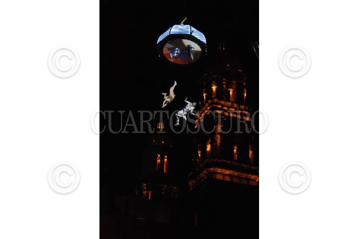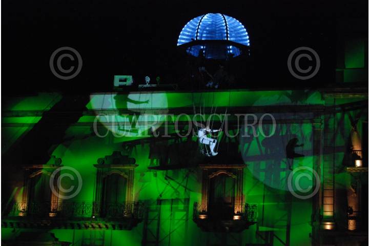 ZACATECAS, ZACATECAS, 15OCTUBRE2017.- En la Plaza de Armas se inauguró la Feria Internacional de Teatro de Calle Zacatecas 2017, los encargados de echar andar el encuentro fue el grupo español Puja con la obra "Quixote". Esta reunión teatral congregará 15 agrupaciones; 3 Zacatecas, 7 nacionales y cuatro internacionales, y los escenarios serán plazas, calles, jardines, el encuentro se extenderán a 12 municipios del estado. FOTO: CARLOS SEGURA /CUARTOSCURO.COM