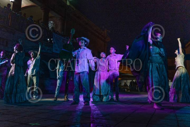 ZCATECAS, ZACATECAS, 30JUNIO2013.- La noche de ayer, el Instituto Zacatecano de Cultura y el Instituto Cultural de Chihuahua, realizaron una representación en la Plaza de Armas sobre la vida de Doroteo Arango, mejor conocido como Pancho Villa. Con actores del estado de Chihuahua y de Zacatecas y música en vivo, la representación contó con escenas de batallas importantes para finalizar con el asesinato del caudillo del norte en la ciudad de Parral. FOTO: ADOLFO VALTIERRA /CUARTOSCURO.COM