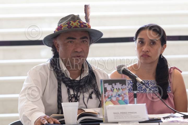 Raúl Pérez Pineda y Rocío Carolina Loa Rosales, durante el anunció de la gira teatral de la Compañía Teatro de los Volcanes por el centro del país.