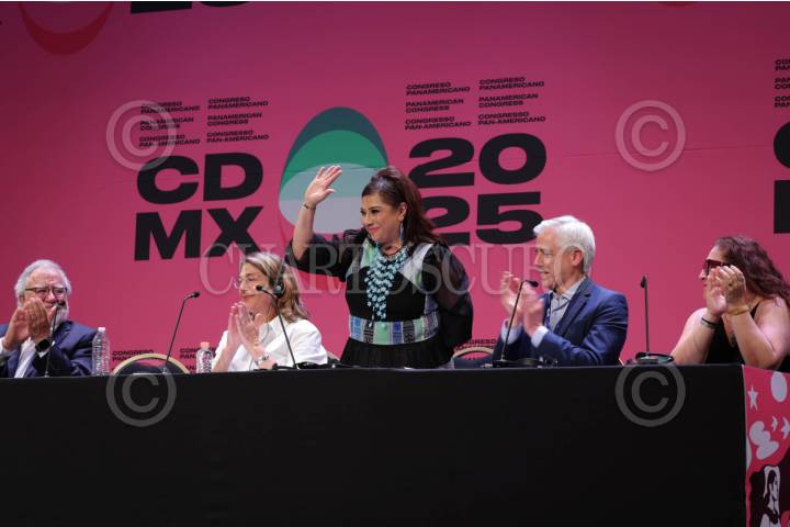 CIUDAD DE MÉXICO, 02AGOSTO20252025.-Clara Brugada, jefa de Gobierno, durante su participación en el Segundo Congreso Panamericano 2025, el cual tuvo sede en el Teatro de la Ciudad Esperanza Iris. FOTO: GOBIERNO DE LA CIUDAD DE MÉXICO/CUARTOSCURO.COM
