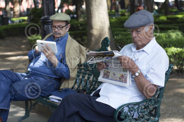 MEXICO, D.F., 15JUNIO2014.- Hombres descansan en una banca en la delegación Coyoacán. FOTO: DAVID POLO /CUARTOSCURO.COM