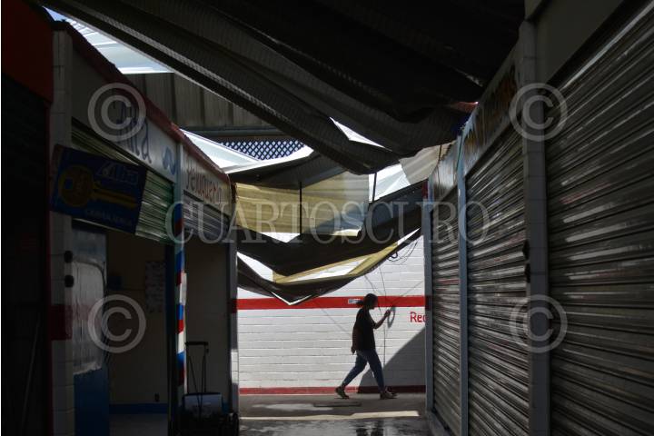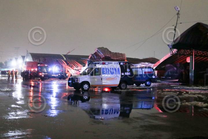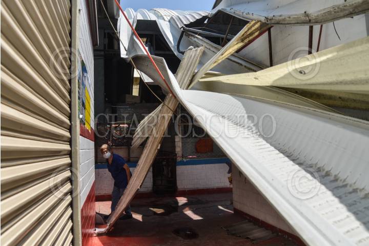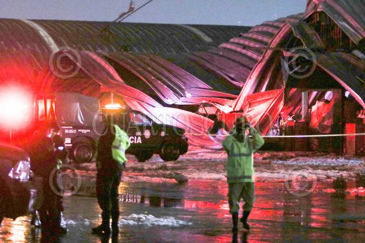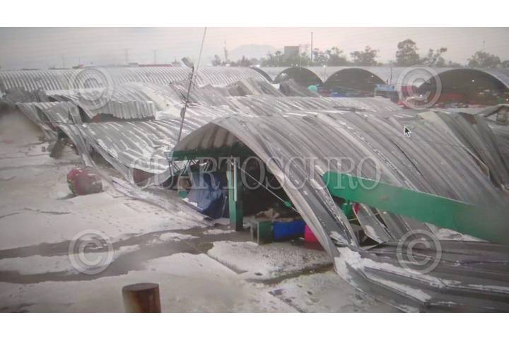 Tras una fuerte granizada al oriente de la ciudad parte del techo de la Central de Abastos se colapso