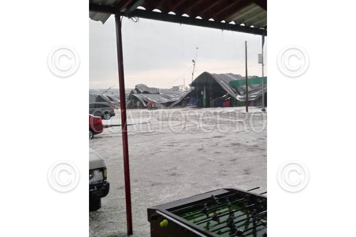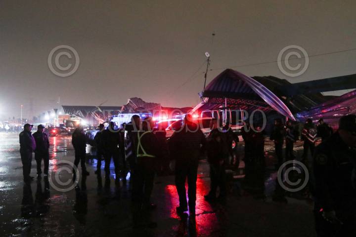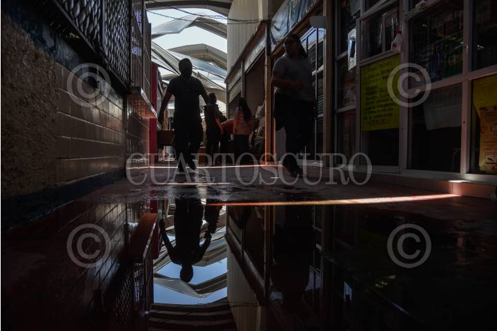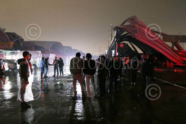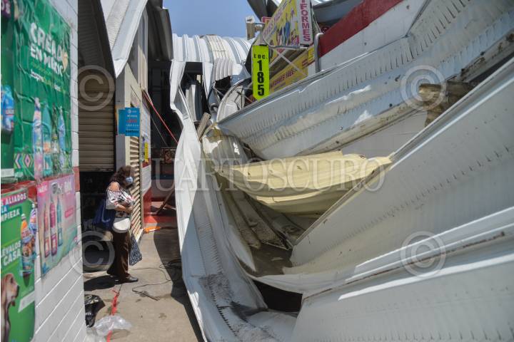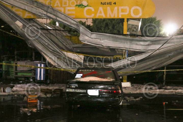 Parte del techo de la Central de Abastos se vino abajo tras la fuerte granizada que se registró hoy por la tarde